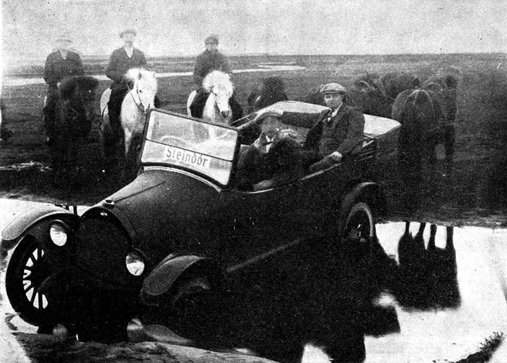 Sumarið 1913 voru fluttir hingað til lands fyrstu bílarnir, sem notaðir voru til fólksflutninga, og þá fóru bílar í fyrsta sinn úr Reykjavík austur í Árnessýslu. Þetta voru Fordbílar með blæjum, heldur ófullkomnir og bilgjarnir og ekki fljótir í ferðum, enda vegir lítt við hæfi. Hér ber þó að telja upphaf bílaaldar á Íslandi. Eftir þetta var ferill bílanna óslitinn, þrátt fyrir ýmiss konar erfiðleika, sem byrjun er oftast samfara. Einkum dró fyrri heimsstyrjöldin, sem hófst ári síðar, úr eðlilegum framförum á þessu sviði, þar eð innflutningur bíla var þá allmiklum vandkvæðum bundinn og bensín illfáanlegt og afar dýrt. Þegar stríðinu lauk, rættist bráðlega úr þessu, og á næstu árum þar á eftir uxu fólksflutningar með bílum hröðum skrefum og náðu til æ fleiri staða.